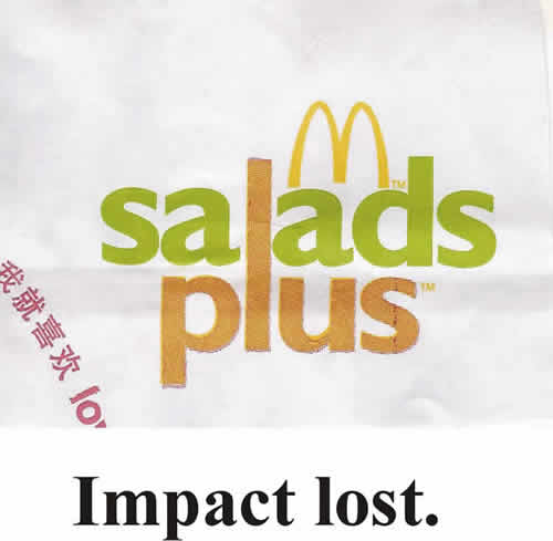 Impact lost because the two text colours look the same.